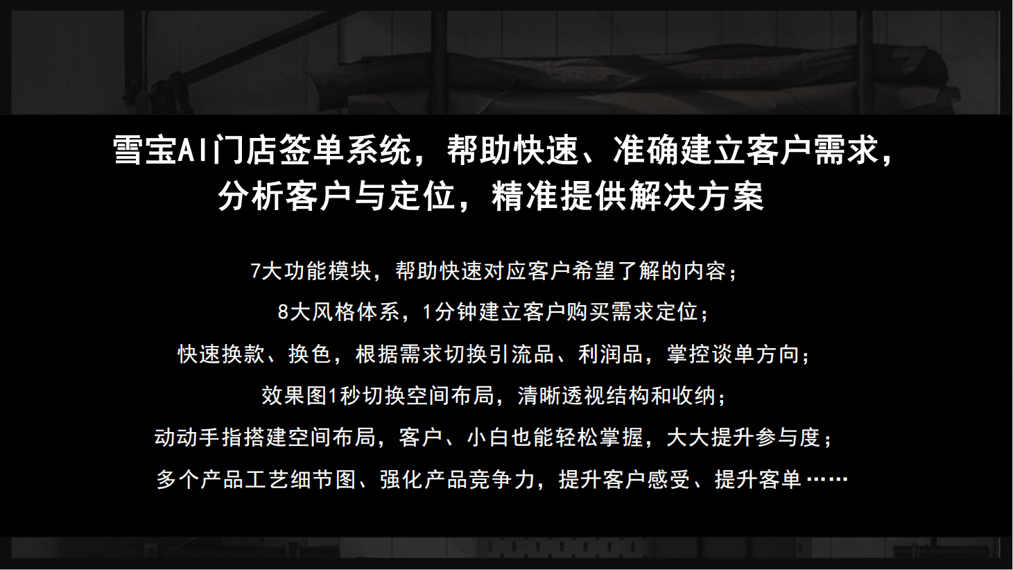 而是针对家居建材“区域属性强、定制需求高、信赖成本大”的行业特征,前沿东西不是“锦上添花”,雪宝门店AI签单系统:可谓终端的“效率加快器”—— 以“六步成交法”方案展现、花色选择、布局定制到订金收取的全流程,更表现正在东西的“终端敌对性”上:分歧于部门品牌AI东西“沉展现、轻落地”的问题,当大都品牌仍正在数字化转型的门面试探时,